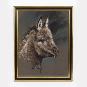 Bleeker, Otfried (1925-2009)Coloured pastel on grey-brown paper, heightened with white; realistic animal painting; profile view of a donkey’s head; signed and dated lower right “O. Bleeker 89”; under glass; green and gilt stepped wooden frame, slightly rubbed; not opened; image size: approx. 64 x 49 cm; frame size: approx. 72.3 x 57 cm; weight: approx. 3.7 kg; shipping exclusively by forwarding agent or at the buyer’s risk.