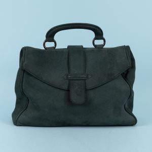 Satchel-Tasche aus blaugrünem Leder, Jil Sander, Hamburg, um 2000420,00 €Soft, grained blue-green leather with black and reddish iridescent hardware; with top handle and detachable shoulder strap; concealed closure with metal push-lock; black textile lining with woven “JS” ornamentation and a side zippered interior pocket; embossed logo at the edge beneath the flap and on the shoulder strap; partial discoloration and minimal signs of wear; dimensions (excluding handle): approx. 27 x 40 x 14 cm; weight: approx. 1 kg.