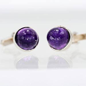 Ring mit Amethyst-Cabochon, Goldschmiedearbeit, 90er Jahre550,00 €Stamped: 585/- yellow gold; total weight: approx. 8.9 g; high oval ring centre with tall conical setting and flowing transition into the ring shank; set amethyst cabochon in an intense violet colour variety; dimensions of the ring centre: approx. 17.7 x 14 mm, height: approx. 12.4 mm; ring size: 53.