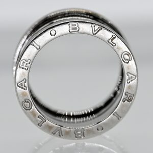 Bandring mit Chalcedon, CARTIER, Paris, 20001.200,00 €750 white gold; total weight: approx. 13.2 g; stylised angular ring form with centrally set square chalcedony cabochon on the top; underside faceted in four tapering sections; dimensions: approx. 8 x 8 mm; inner shank engraved: 52 C Cartier 2000 and 750 Cartier K05798; width of the shank centre: approx. 8 mm; height: approx. 6 mm; ring size: 52; original case and certificate.
