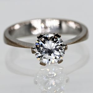 Solitärring mit 1 Brillanten ca. 1,3 (9) ct, 21. Jahrhundert2.900,00 €Stamped: 750/- white gold and an unidentified hallmark; total weight: approx. 3.9 g; six-prong raised crown setting and a plain tapered band; centrally set brilliant-cut diamond approx. 1.3 (9) ct; colour: E-F; clarity: VVSI-VSI; dimensions of the ring head: diameter: approx. 7.5 mm, height: approx. 6.2 mm; ring size: 54; band surface with lightly visible signs of wear.