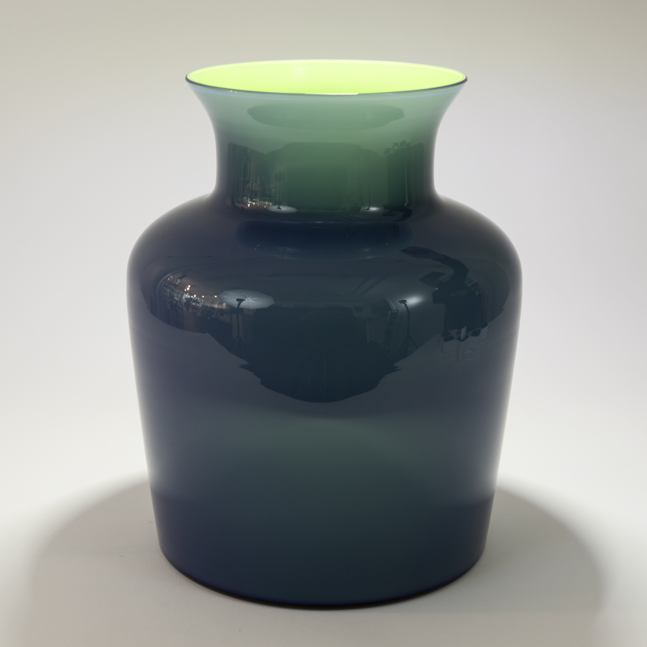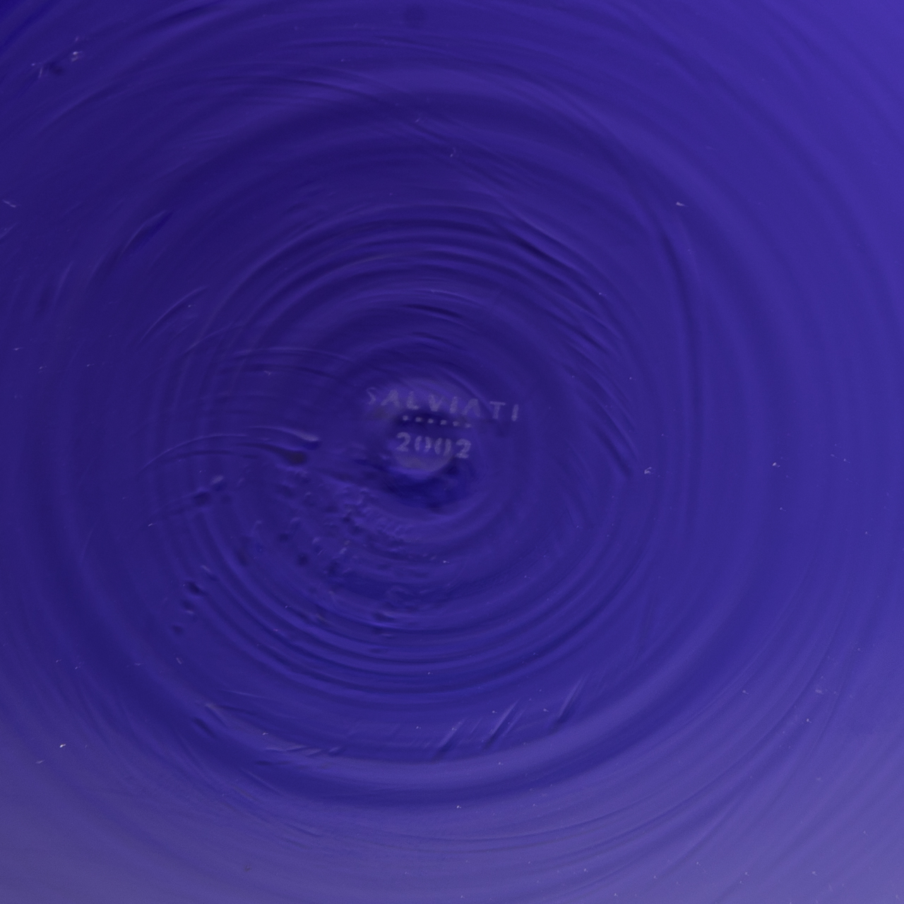 Coloured Murano glass, blue exterior with opaque white intermediate layer and light green interior, made in the opalino technique (overlay); good condition, minimal signs of use (fine scratches - mainly sliding marks on the base); height: approx. 30 cm; inscribed on the base “Salviati 2002”; original label on the wall; weight: approx. 2.5 kg. Shipping exclusively by forwarding agent or at the buyer’s risk.