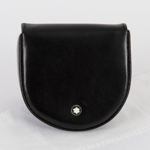 Calf leather, matt waxed, inside one small compartment for coins and one small compartment for folded banknotes; front with Montblanc emblem, reverse stamped “MONTBLANC”, inside stamped “MADE IN GERMANY”; dimensions: approx. 8 × 7.5 cm; very good condition; weight: 37 g.