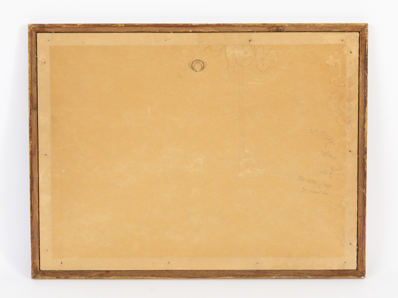 Oil on cardboard; impressionist genre painting with a coloristic concept; ball scene with linear color accents creating a sense of movement; lower right indistinctly signed and dated “Halasi Horvath 192(?)”; verso with various inscriptions (including “1927”), cardboard print and writing; wide stepped gilt frame; not opened; image size: approx. 27.5 x 33.5 cm; frame size: approx. 36.5 x 42.8 cm; weight: approx. 1 kg.