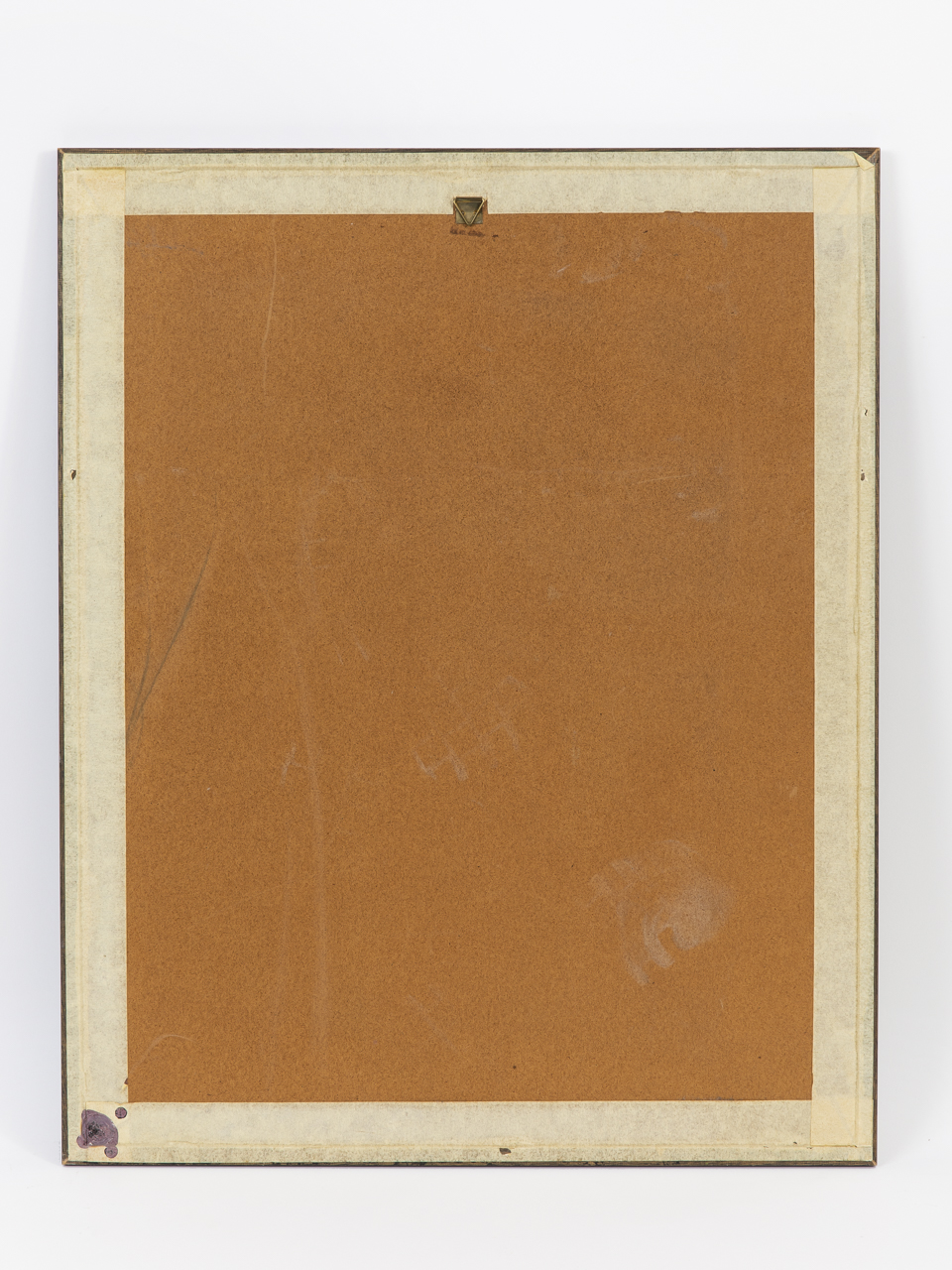 Colour lithograph; landscape painting; pen drawing coloured with watercolour; view from the pavement onto the Venetian bridge Ponte de l’Ospedaletto with surrounding houses; lower left monogrammed “OE”? and dated (19)90; grey Passepartout behind glass; narrow brown wooden frame with golden edging; not opened; image section dimensions: approx. 39.5 x 27.5 cm; frame dimensions: approx. 62 x 50 cm; weight: approx. 2.7 kg.