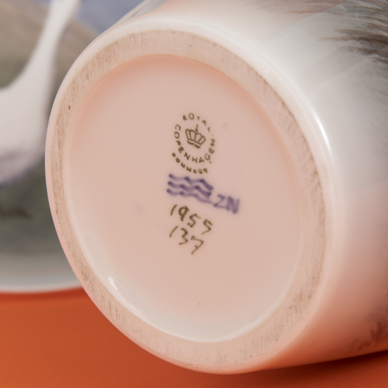 Große Vase und Wandteller mit Schwänen und Gänsen, Royal Copenhagen, Dänemark, 20. Jh.