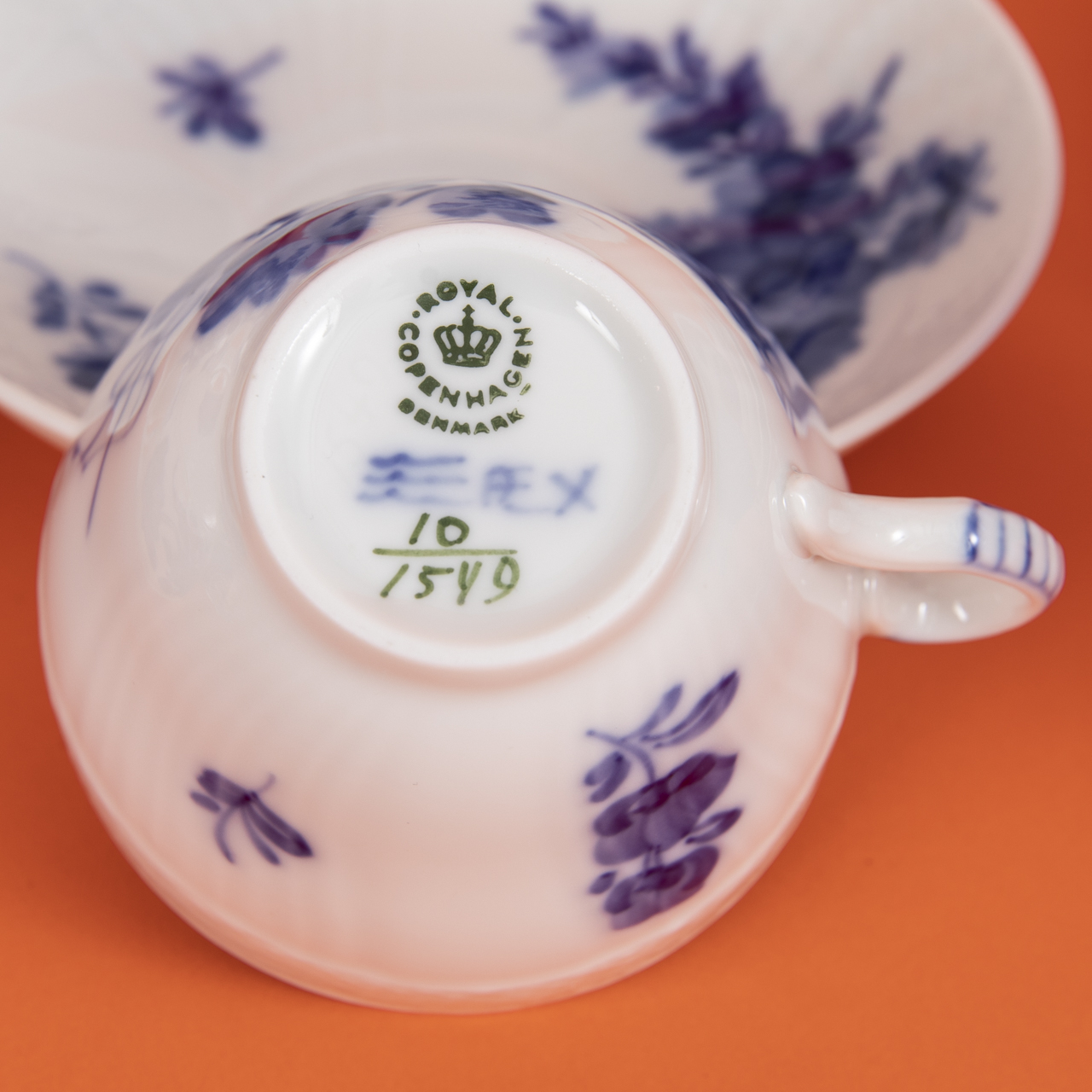 Kaffeeservice für 6 Personen „Blå Blomst“ („Blaue Blume geschweift“), Royal Copenhagen, 20. Jh.