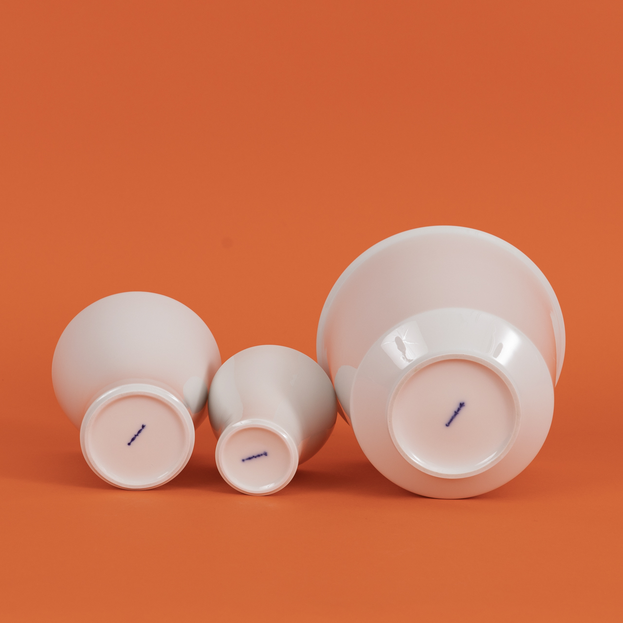 White porcelain; cachepot from the “Urania” collection and two “Krokus” beakers or vases of different sizes; height: approx. 8, 11.5 and 12.5 cm; 1st quality and in very good condition with minimal signs of use (cachepot with tiny, inconspicuous “tinz chip” on the foot ring); underside with various earlier underglaze blue sceptre marks; total weight: approx. 870 g.