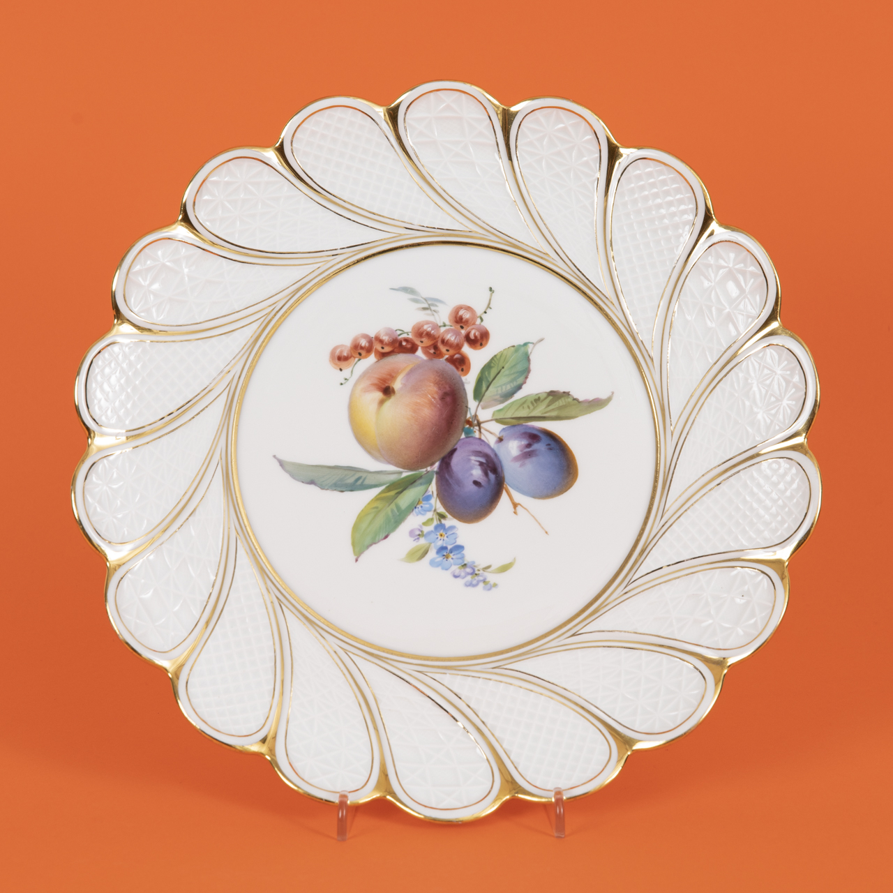 Presentation plate with fan relief and fruit painting, Meissen, c. 1900