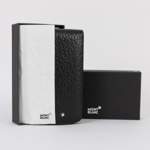 Embossed calf leather, front with Montblanc emblem, reverse stamped “MONTBLANC”; in original case with product designation (“Round Zip Pouch 3”); dimensions: approx. 17 × 7.5 cm; very good condition (probably never used); weight of case: 68 g; total weight: approx. 129 g.