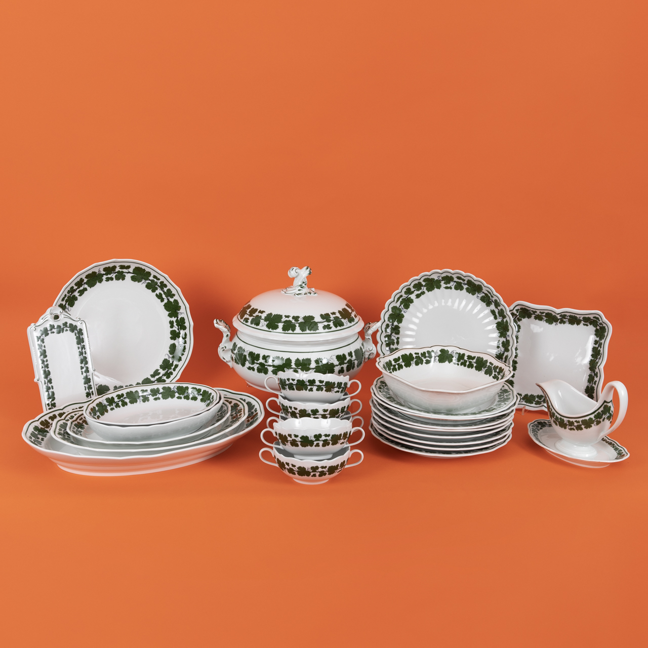 Dinner service lot for up to 8 persons “Voller grüner Weinkranz”, Meissen, 19th/20th century