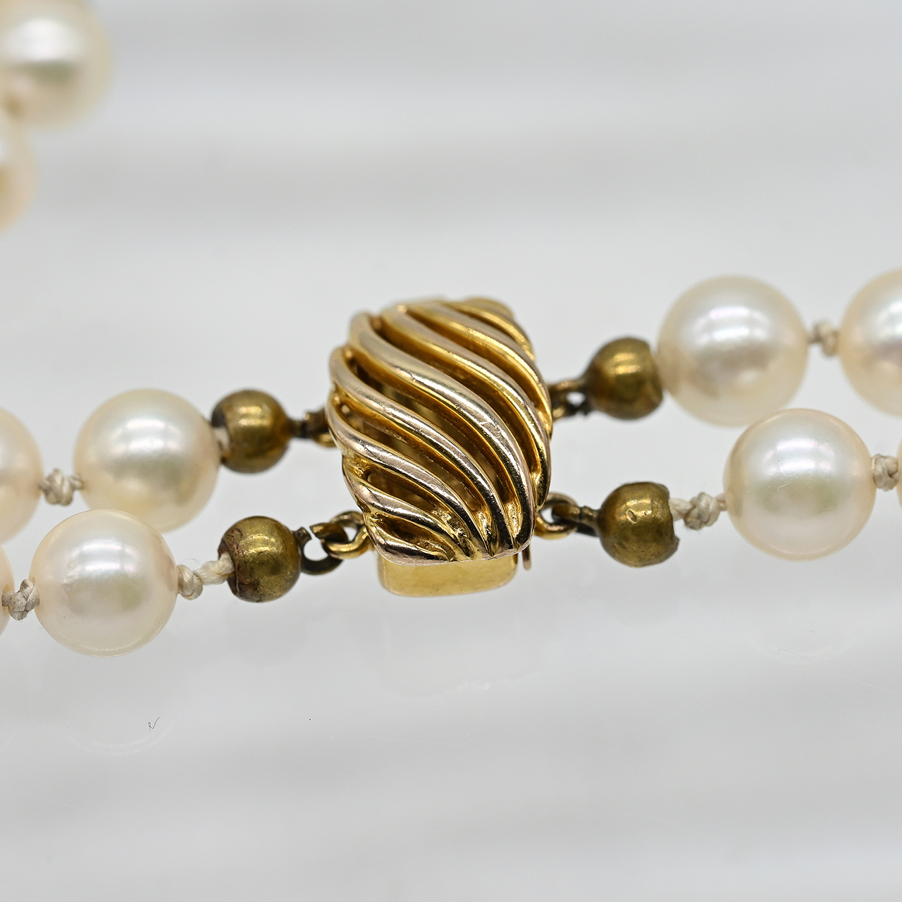 2-reihiges Perlarmband mit goldenem Schloss, 80er Jahre