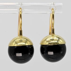 585/- yellow gold; total weight: approx. 2.1 g; two intertwined C-shaped circles, one set with ten small diamonds; dimensions: approx. 11 x 16.1 mm; height: approx. 2 mm.