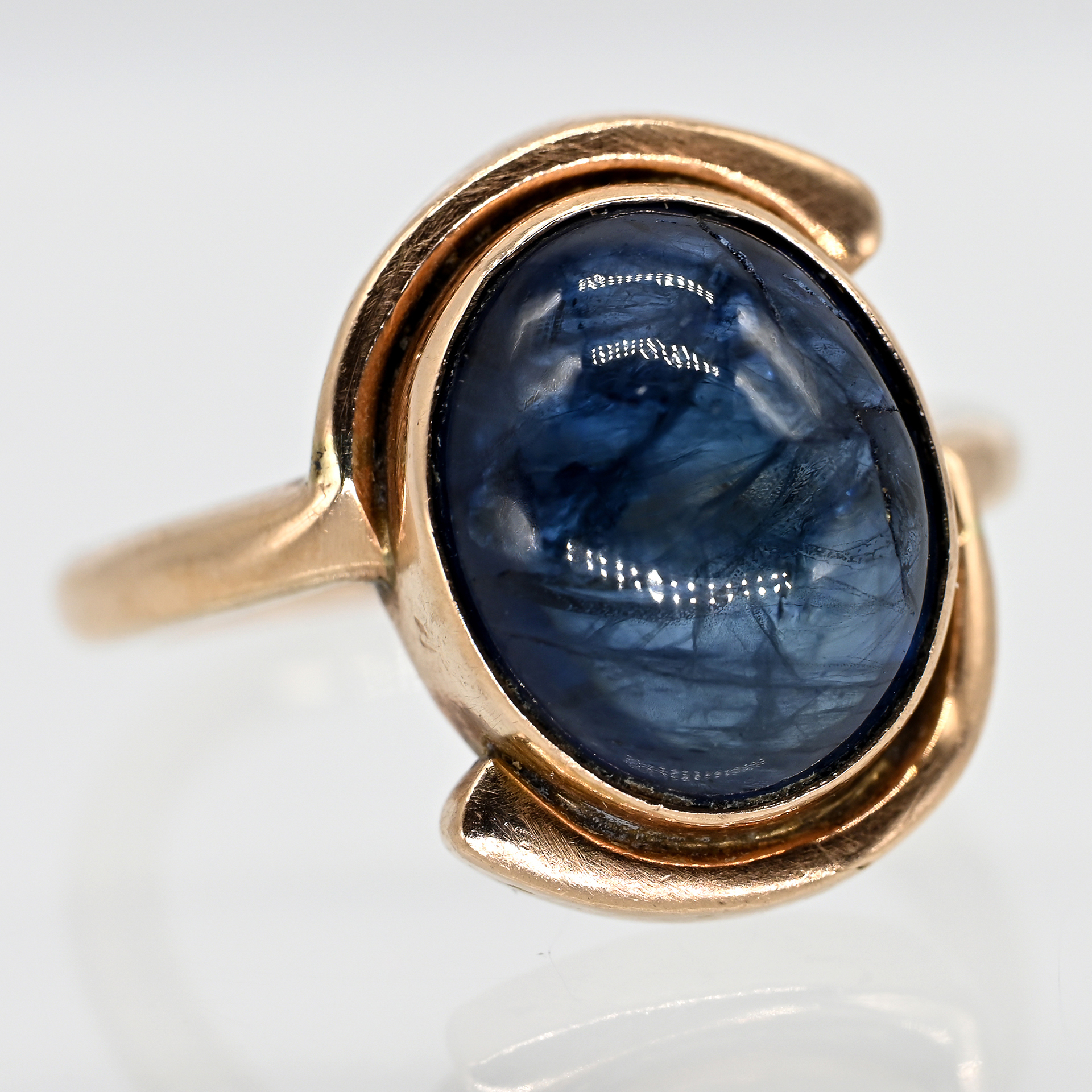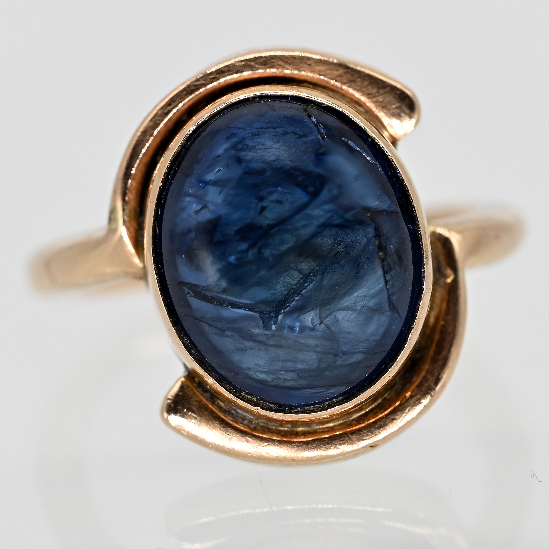 Ring mit Saphir-Cabochon, Goldschmiedearbeit, 90er Jahre