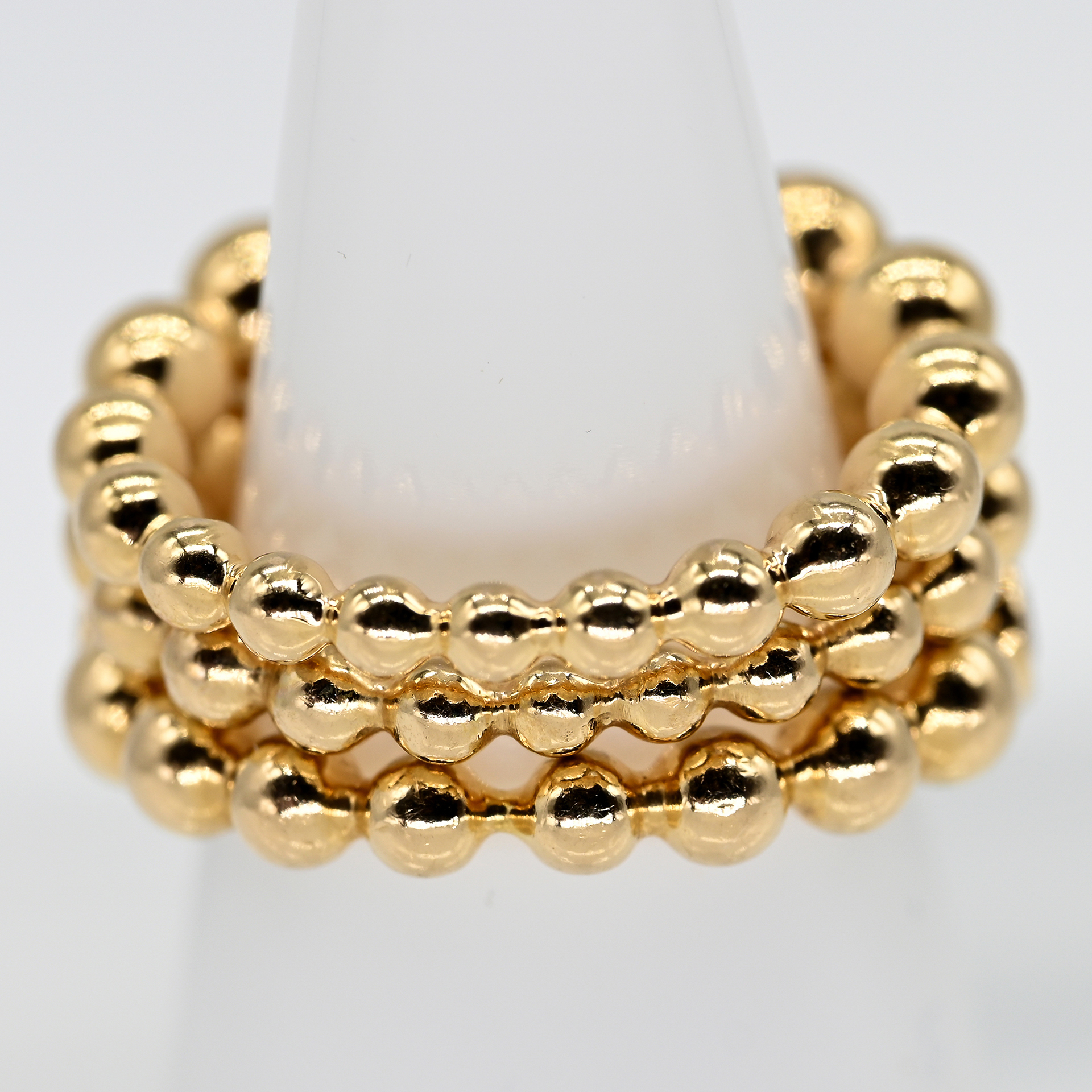 Gestempelt: 750/- Roségold; Gesamtgewicht: ca. 20,8 g; aneinandergereihte Kugeln im seitlichen Verlauf; jeweils mit einer unterschiedlichen Anzahl von Brillanten ausgefasst: 1) 1 Brillant ca. 0,14 ct; Farbe: G; Reinheit: SI; Breite der Ringmitte: ca. 4,5 mm; Ringgröße: 52. 2) 3 Brillanten, zus. ca. 0,34 ct; Farbe: G; Reinheit: SI; Breite der Ringmitte: ca. 4,6 mm; Ringgröße: 52. 3) 7 Brillanten, zus. ca. 0,68 ct; Farbe: G; Reinheit: SI; Breite der Ringmitte: ca. 5 mm; Ringgröße: 52; Alle Angaben lt. Rechnung: Wempe, Hamburg, vom 27.12.2011.