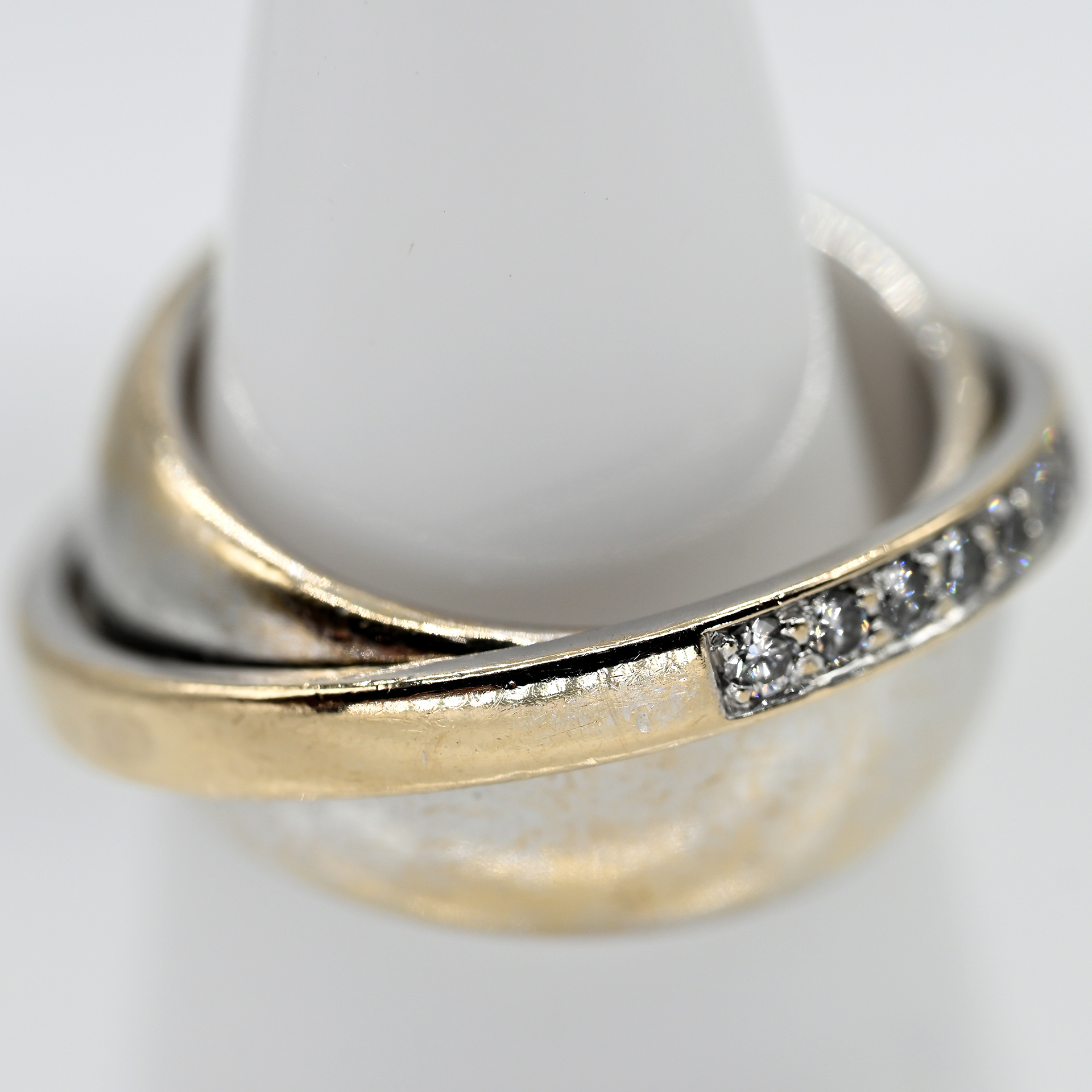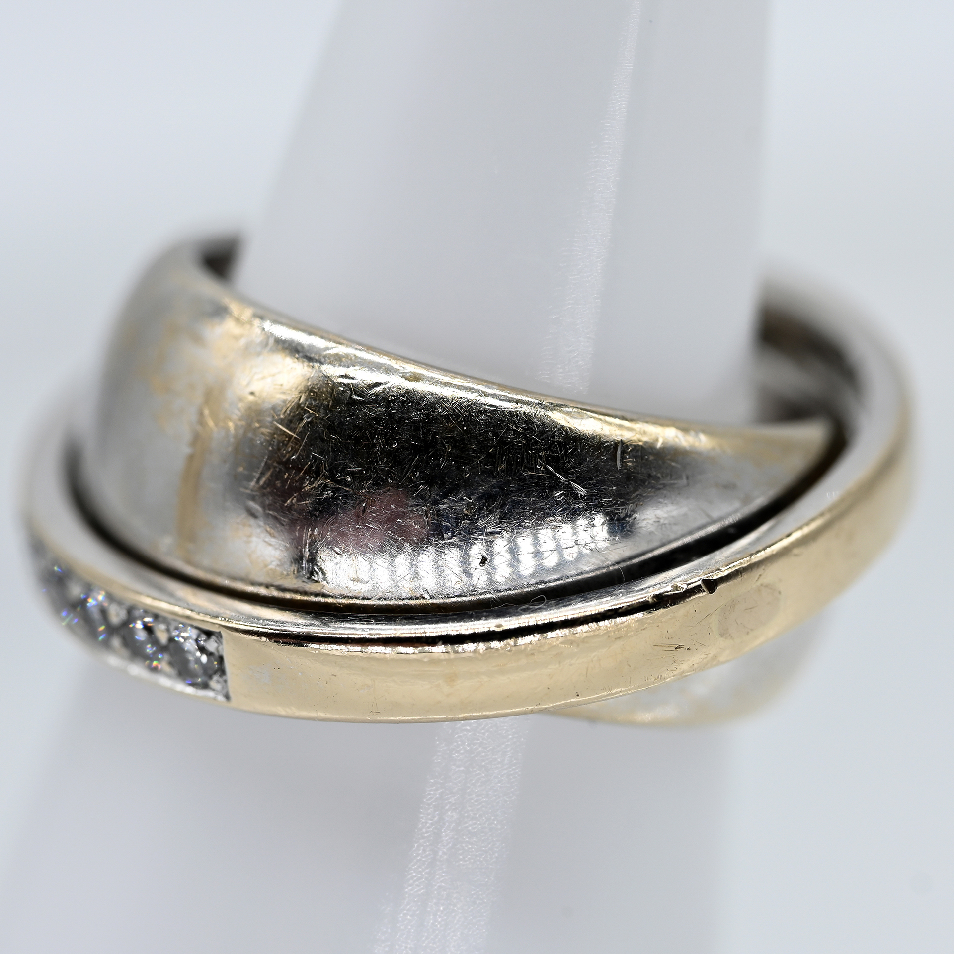 Gestempelt: 750/- Weißgold, rhodiniert; Modellnr. B62558; Gesamtgewicht: ca. 17,5 g; auf zwei unsichtbaren Achsen gelagert, ein breiterer und ein schmalerer Ring; auf der Schauseite des schmaleren Ringes 24 gefasste Brillanten, zus. ca. 0,48 ct; Farbe: G-H; Reinheit: VS; Ringbreite: ca. 8,6 mm; Ringgröße: 54.