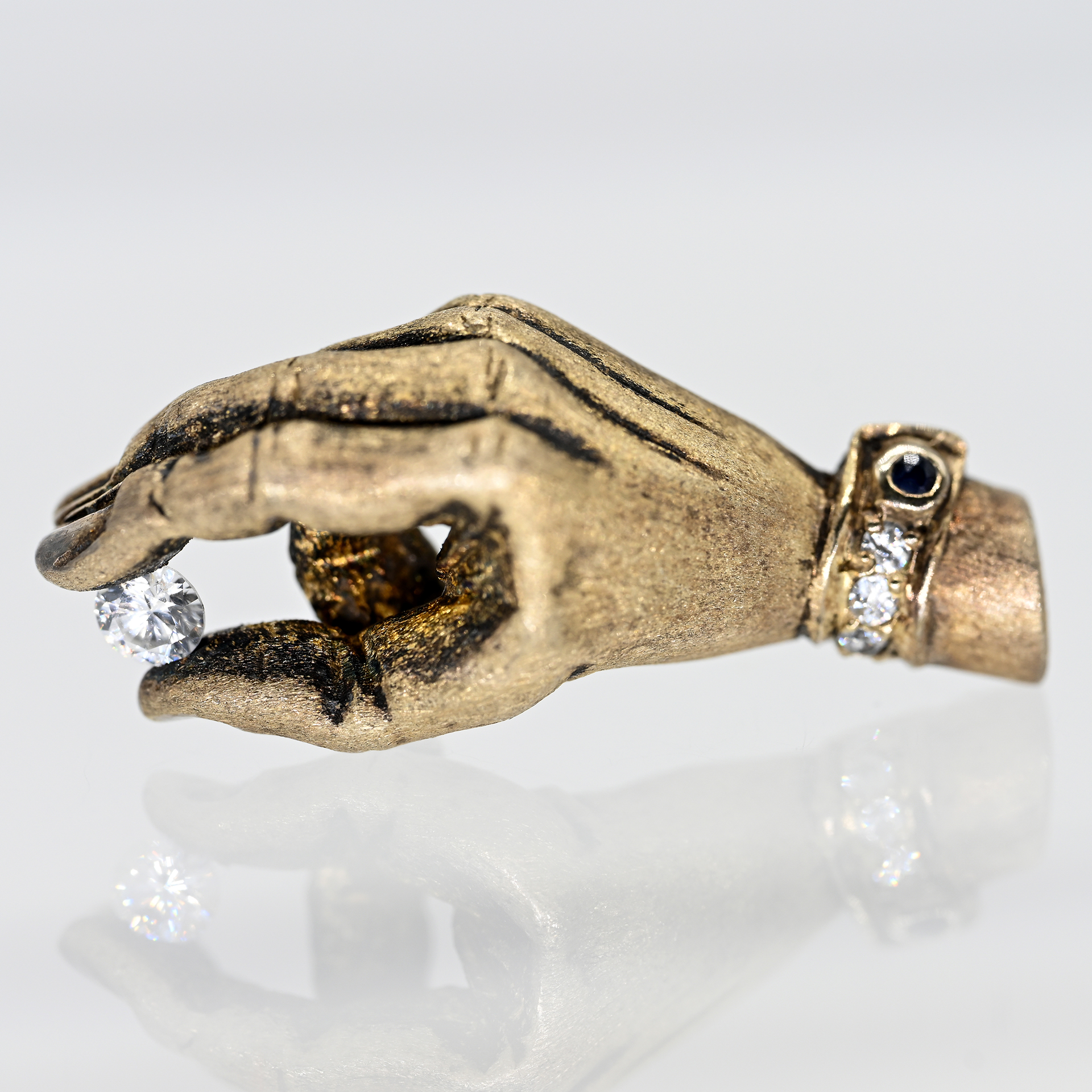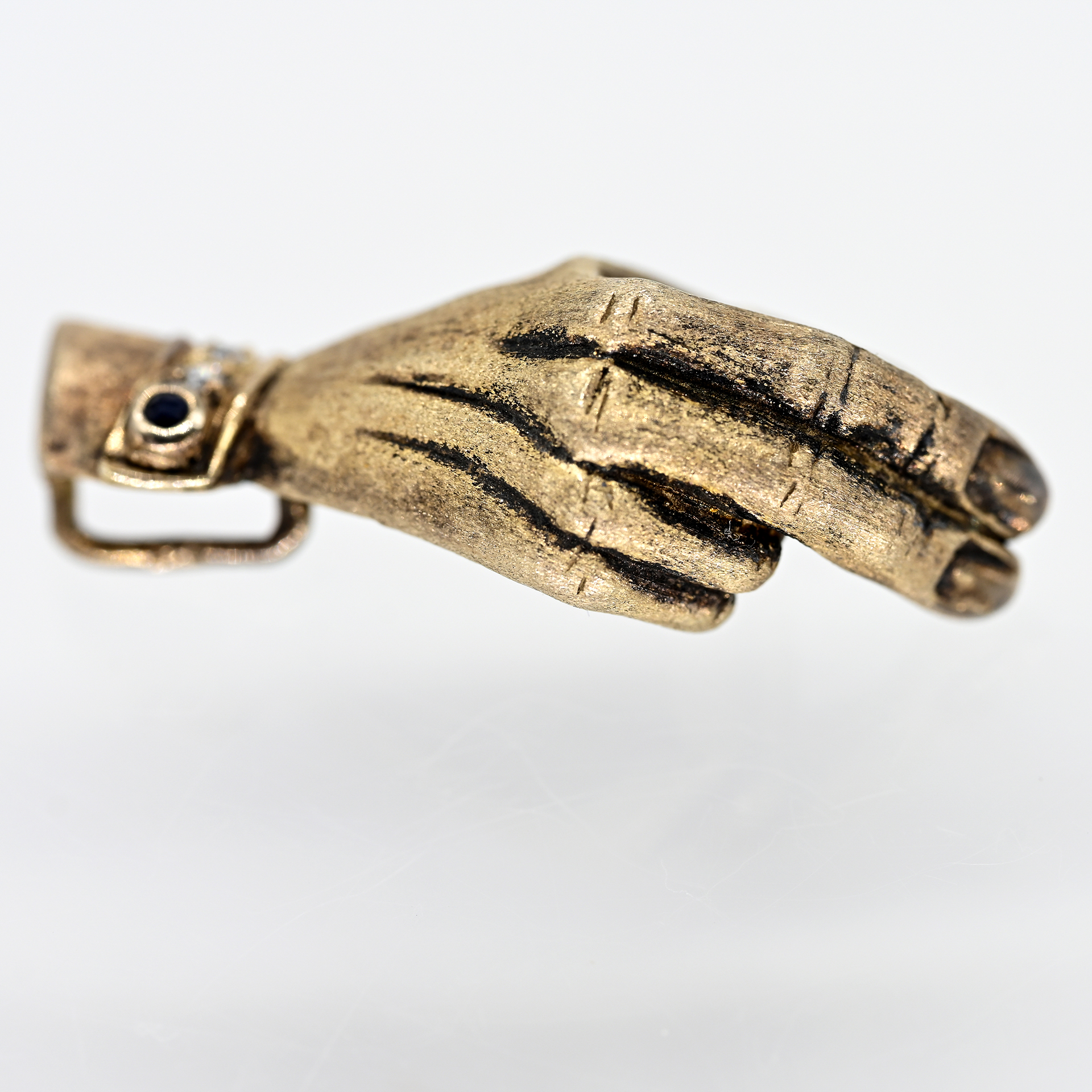 Anhänger „plastische Hand“ mit Farbsteinbesatz, Goldschmiedearbeit, 21. Jh.