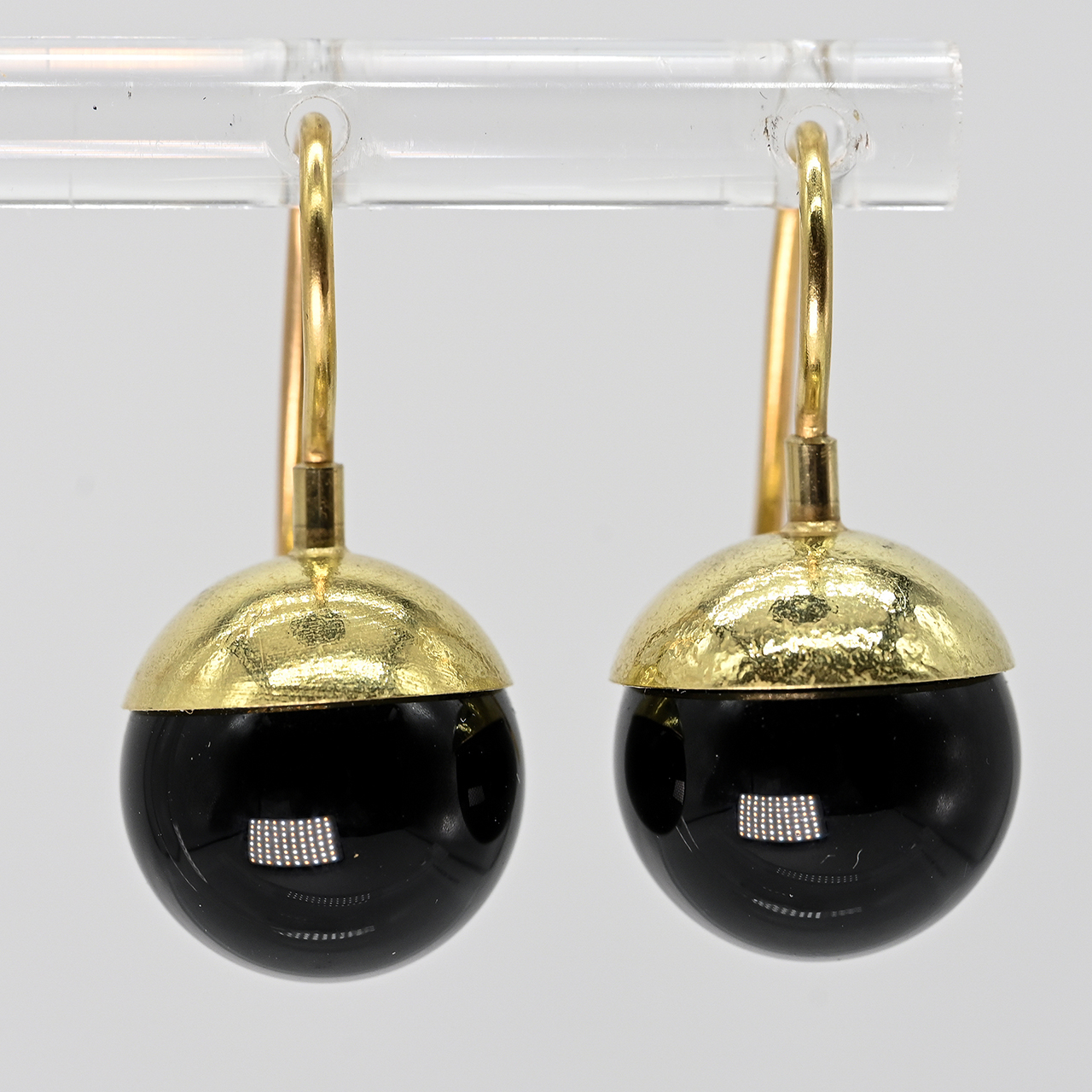 Paar Ohrgehänge mit Onyx-Kugeln, Goldschmiedearbeit NM, 21. Jh.