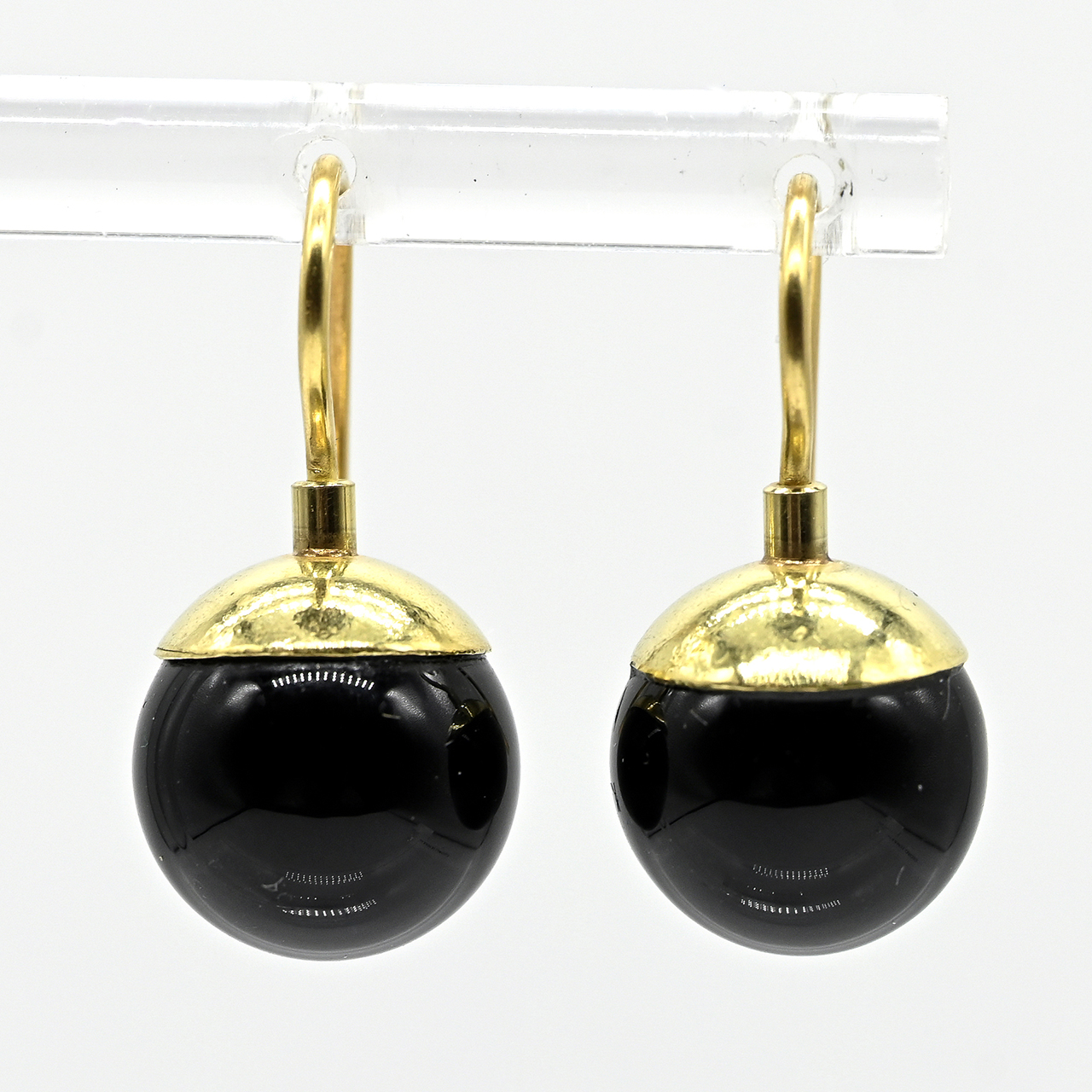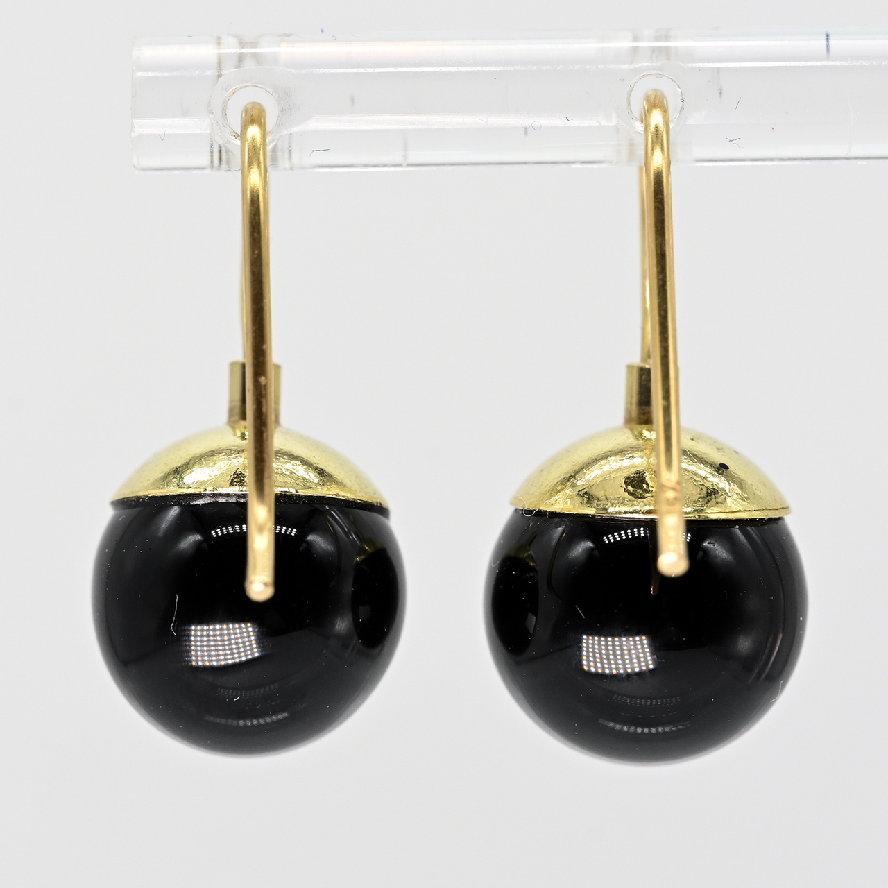 Paar Ohrgehänge mit Onyx-Kugeln, Goldschmiedearbeit NM, 21. Jh.