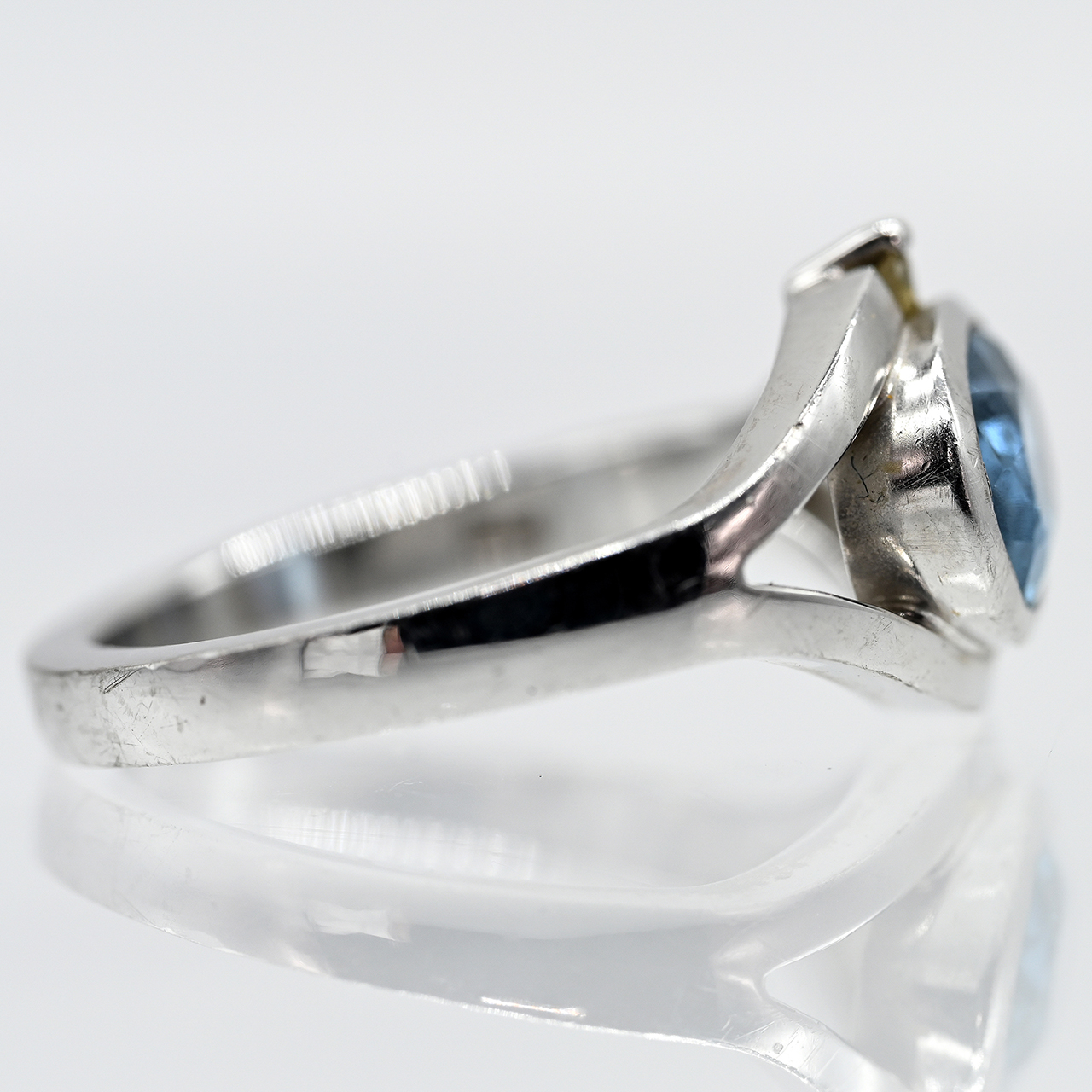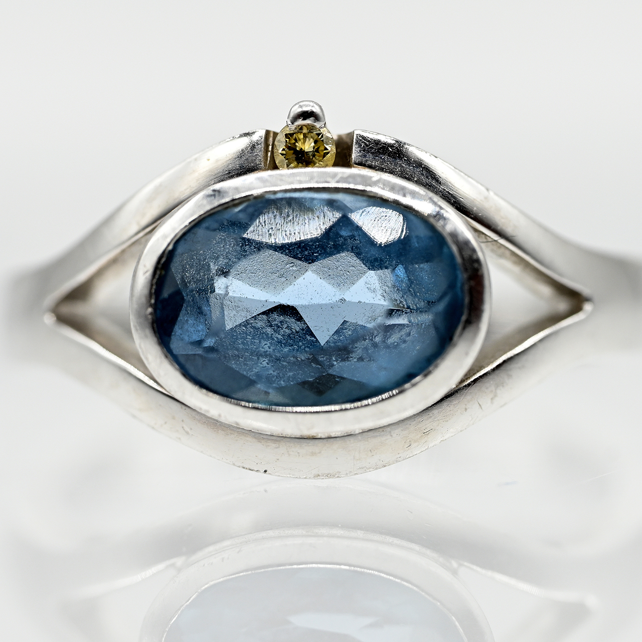 Ring mit hellblauem Topas und kleinem Achtkant-Diamanten, Goldschmiedearbeit, 21. Jh.