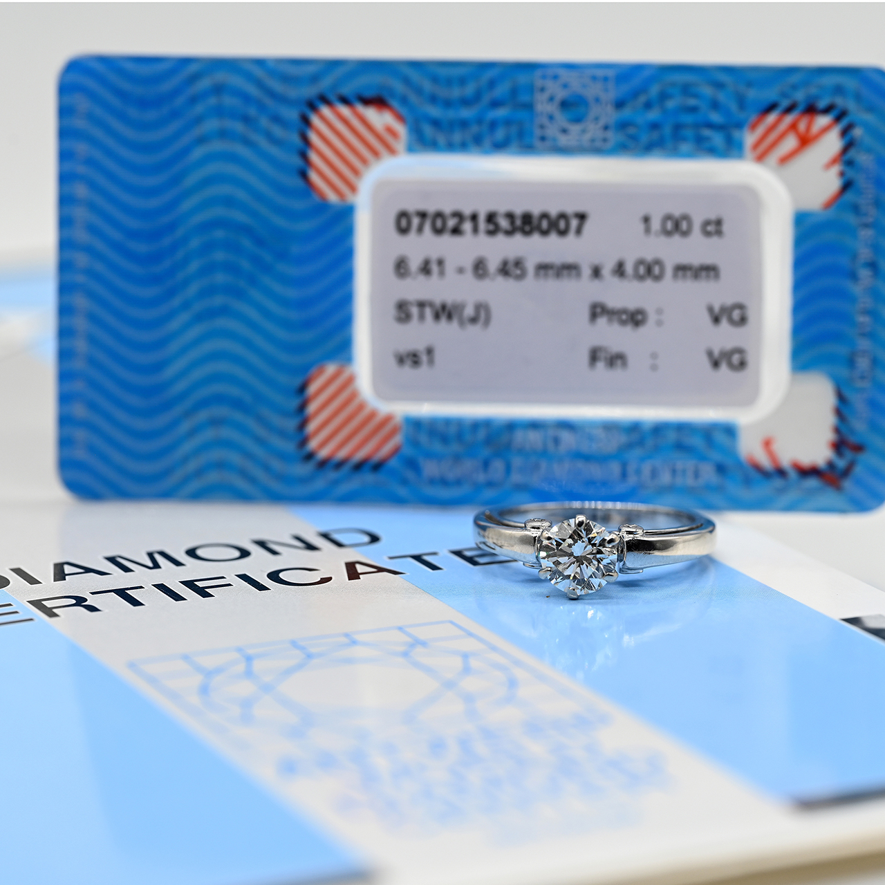 Solitaire ring set with brilliant-cut diamond, 1 ct, HRD certificate from 2007, 21st century.
