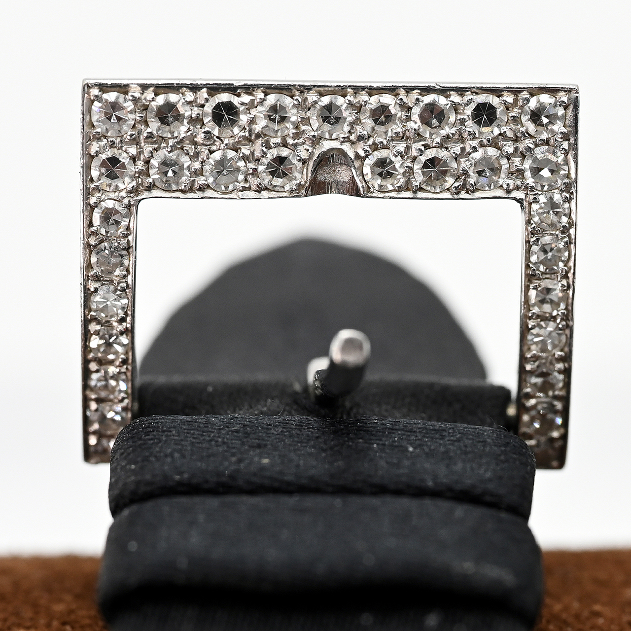 Case and pin buckle in 18 kt (750/-) white gold; black textile strap; total weight: approx. 35.3 g; manual winding movement, calibre Frédéric Piguet 21; rectangular case; square dial in black onyx with white gold-coloured arrow-shaped hands; bezel set with approx. 68 diamonds; pin buckle set with 31 diamonds, totalling approx. 1.5 ct; colour and clarity in the upper range; serial number: 94877; reference number: H 2204/1; case dimensions: approx. 30.4 x 26.6 mm; height: 5 mm; minor signs of wear; no guarantee on movement or function; original case; no papers.