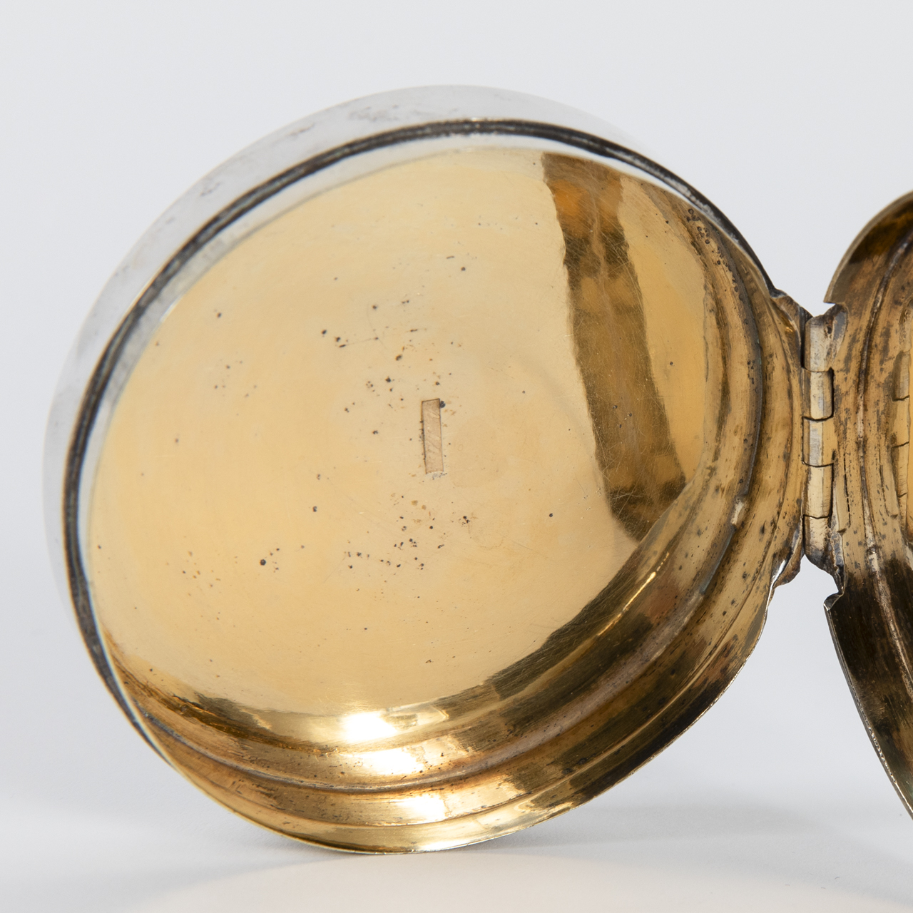 Antike Silberdose mit feinem Porzellanbildnis, Mitte 18. Jahrhundert