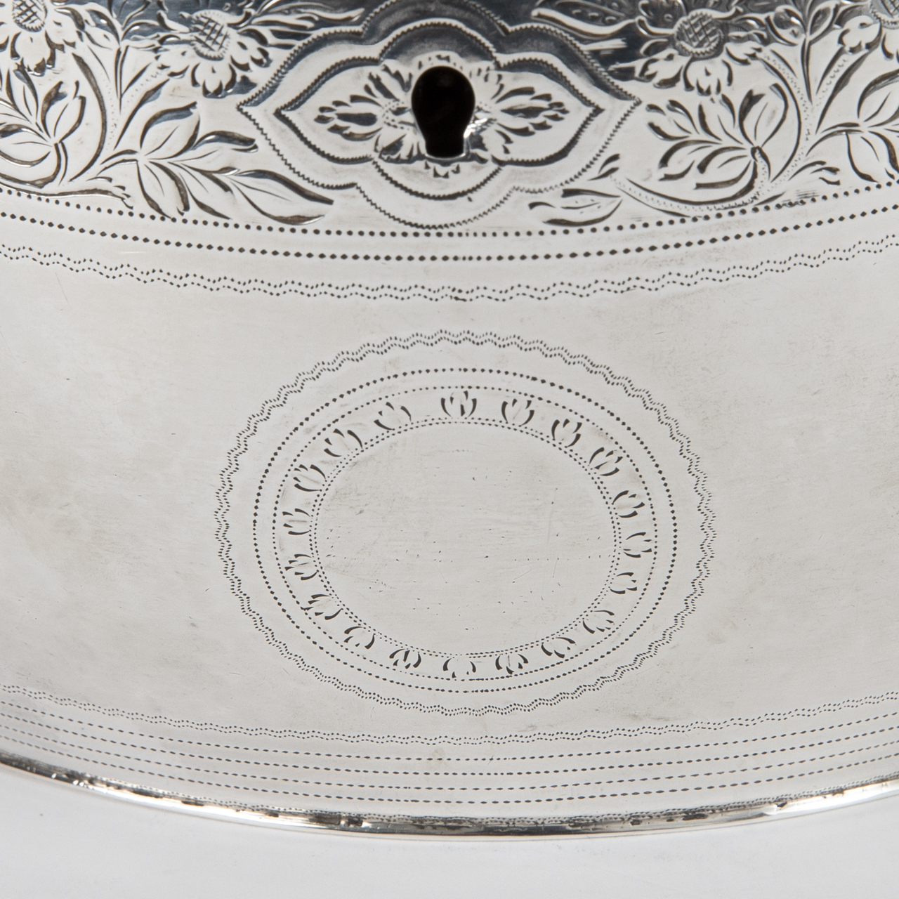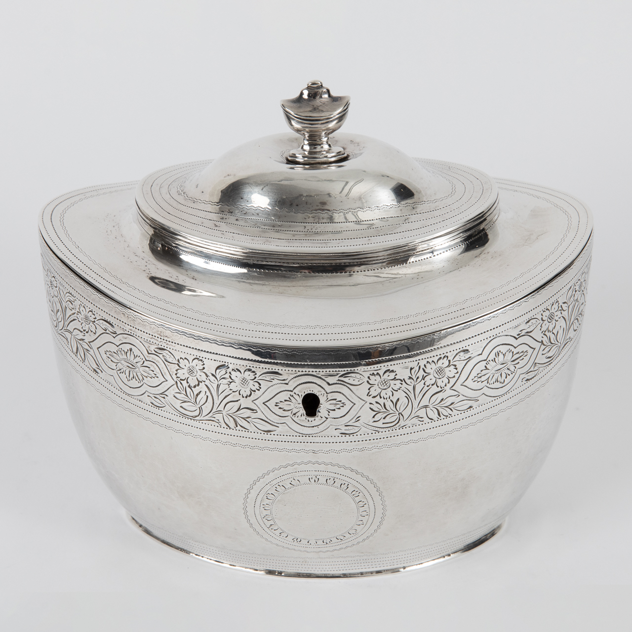 Antique sugar box with engraved decoration, London, England, 1803