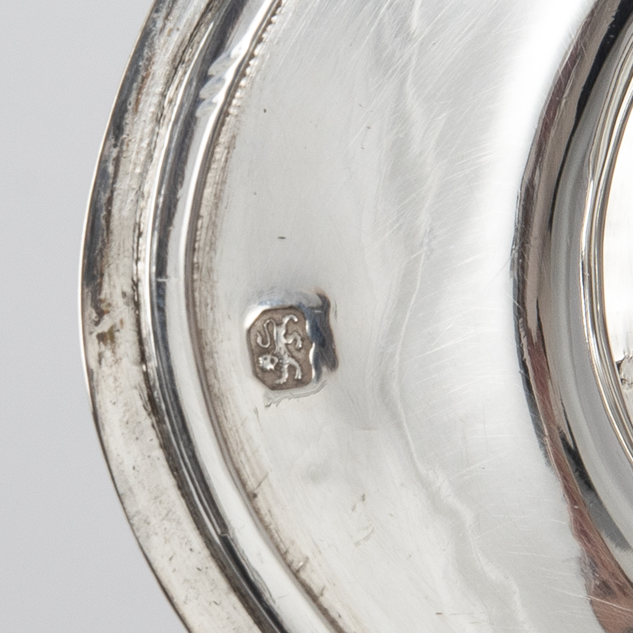 Sterling Silber; Gewicht: ca. 412 g; ovoidförmige Zuckerdose auf schmalem Standring mit hochgezogener Schulter, rückseitig abklappbarem, profiliertem Deckel und pilzförmiger Handhabe; auf der Schauseite mittig eingelassenes Schlüsselloch, Schlüssel fehlt; auf der Wandung umlaufende Bordüre mit Floraldekor sowie ziselierten Linierungen, mittig auf Schau- und Rückseite jeweils eine runde Reserve, auf der rückseitigen mit lateinischer Devise „NEC TIMERE NEC TIMIDE“; auf dem Deckel feine umlaufende Ziselierungen; altersbedingte Gebrauchsspuren, Deckelbekrönung vermutlich später angebracht und mit unregelmäßiger Vertiefung; im Deckel mit Lion Passant gestempelt, unterseitig mit Lion Passant, Duty Mark, Stadtmarke London, ungedeuteter Meistermarke und Jahresbuchstabe versehen; Maße: ca. 14,6 x 14,6 x 10,5 cm.