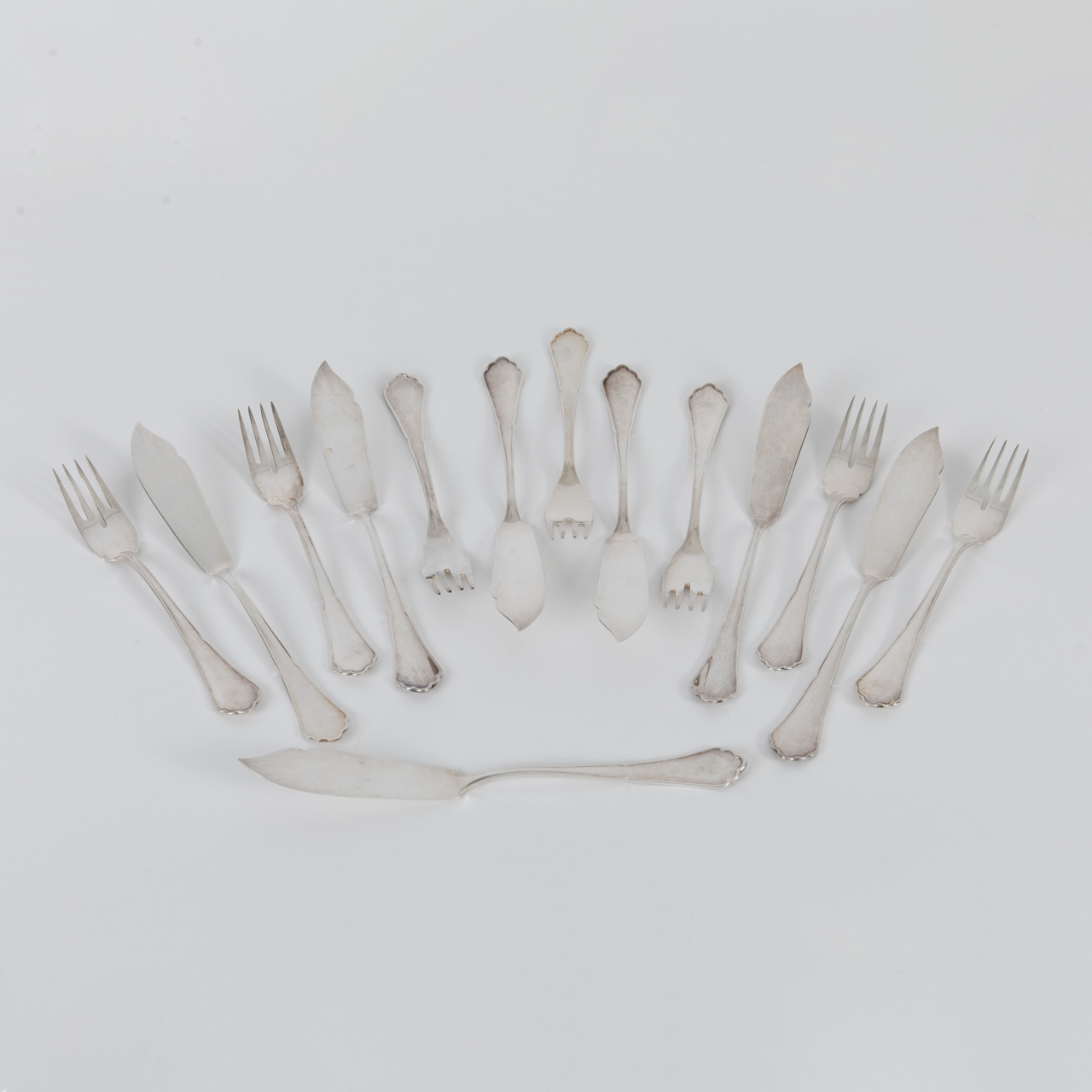 Fish cutlery set for 7 persons with Chippendale decoration, BSF, Bremen, Germany, 20th cent.